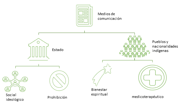 Además, no hay que olvidar que al hablar del cultivo y consumo de plantas psicoactivas en el contexto de los pueblos y nacionalidades se está haciendo referencia a prácticas ancestrales de la medicina tradicional definida por el Código de Ética de la medicina ancestral-tradicional de las nacionalidades y pueblos del Ecuador como «Un sistema integral que se orienta a través de sus propios principios que fundamentan lo que se entiende por salud y enfermedad, estructuran la manera de diferenciar las enfermedades y establecen su racionalidad para actuar curando y sanando y hacen funcionales sus diagnósticos, terapias y tratamientos» (Dirección Nacional de Salud Intercultural, 2020, p. 22).