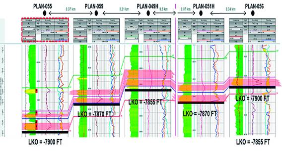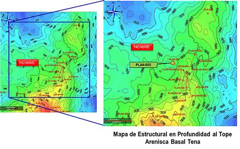 En la figura 3 se presenta el corte estructural y estratigráfico NW-SE dé la arena Basal Tena.