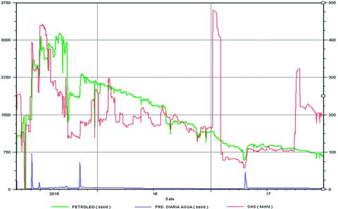 La arena Basal Tena produce desde abril del año 2015, en la figura 2 se muestra el historial de producción: