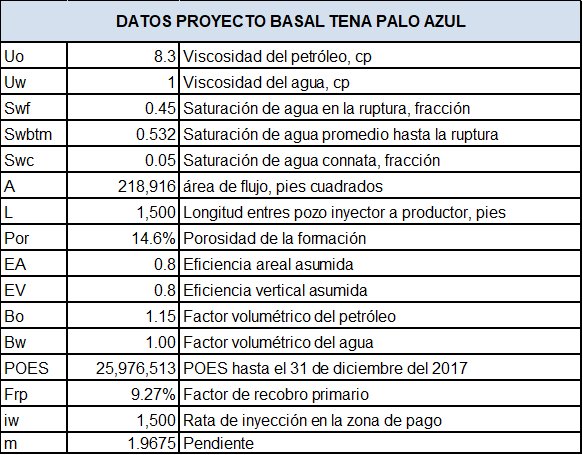Aplicación del método de flujo fraccional para recuperación secundaria en el campo Palo Azul