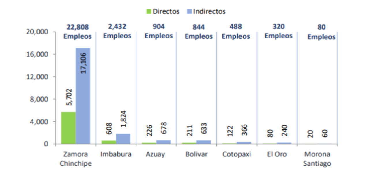Morona Santiago es la provincia con la mayor presencia minera con 38.548 hectáreas. En términos laborales, cada provincia cuenta con una importante fuerza laboral, siendo Zamora Chinchipe la provincia con la mayor cantidad de empleados (21.640) y Morona Santiago la provincia con la menor cantidad crítica de mano de obra (8) (Figura 3).