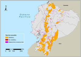 El desarrollo de la minería en Ecuador se remonta a la época precolombina (Yépez, 2016), pero fue hasta el siglo XIX cuando se aprobó la primera ley enfocada en la minería. En 2009 se creó la ley minera actual, que incluye artículos 68 y 58, que establecen como objetivo fundamental velar por el bienestar físico y mental de todas las personas involucradas en la concesión minera. De esta manera, se busca evitar que las empresas sean negligentes y corruptas, ya que la prioridad deben ser los trabajadores. En Ecuador se extraen tres tipos de materiales: metálico, no metálico y pétreo, siendo este último uno de los más abundantes en términos de regiones que ocupa (Figura 4).