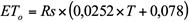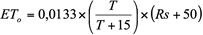 Donde: Ra es la radiación solar entrante de onda corta (mm d-1); Tmax, la temperatura máxima (°C); Tmin, la temperatura mínima (°C); KT, 0,162 por regiones internas y 0,19 para regiones costeras.