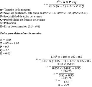 Luego de aplicar la fórmula para conocer la muestra se obtuvo un total de 299 encuestas que se realizaron con las cuales se tuvo un 95% de confiabilidad.