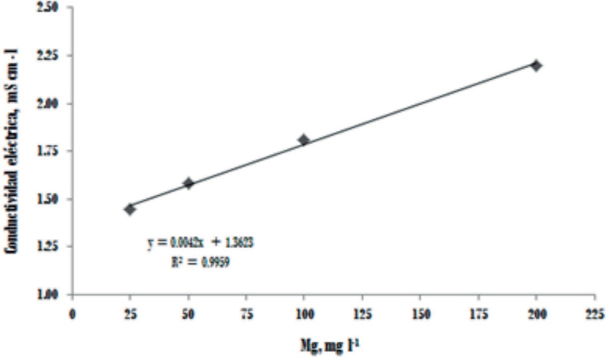 Por otro lado, se observó un efecto favorable al incrementar el Mg de 25 a 50 mg l-1 en la altura de la planta y la circunferencia en la base del pseudo tallo, sin embargo, este incremento no fue suficiente para neutralizar el efecto del Al. Dosis superiores a 50 mg l-1 no tuvieron ningún efecto sobre la altura de la planta y la circunferencia del pseudo tallo debido al incremento en la conductividad eléctrica de la solución nutritiva al elevar la concentración de Mg (Figura 2), condición que afectó en forma negativa el crecimiento de la planta. La utilización de dosis mayores de 50 mg l-1 redujo el efecto positivo del incremento de Mg en la solución, lo que confirma que el banano es una planta susceptible a la salinidad (De Oliveira et al., 2000).