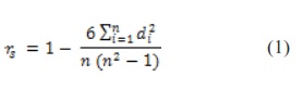 En donde: , es la multiplicación de 6 por la sumatoria de los valores di; en donde: es el número de datos de X e Y; y rs es
