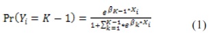 Donde K es el número de alternativas de motivación para consumir productos agroecológicos (en este caso dos), una de las cuales es la motivación principal y/o secundaria para que un individuo i consuma productos agroecológicos, X es un vector de variables explicativas que serán descritas a continuación y β es un vector de coeficientes cuya magnitud y dirección son de fundamental interés para este estudio.