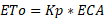 Donde, ETo = Evapotranspiración de referencia mm día-1, mm mes-1, Kp = Coeficiente del tanque adimensional, ECA = Evaporación de agua del tanque mm día-1, mm mes-1.