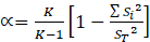 Donde, K es el número de ítems, Si2 es la sumatoria de varianzas de los ítems, y ST2 varianza de la suma de los ítems.