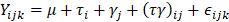 (𝛕γ)ij: efecto de interacción producido entre el i-ésimo tratamiento del factor de estudio genotipo y el j-ésimo tratamiento del factor de estudio niveles de infestación.
