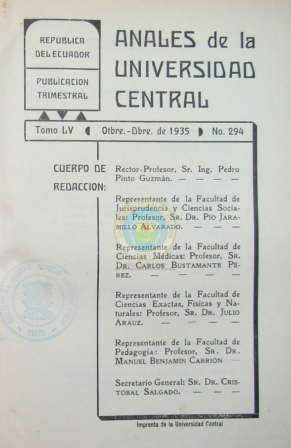 ANALES DE LA UNIVERSIDAD DE QUITO, JULIO-SEPTIEMBRE